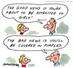 It’s a fact that a boy’s voice changes, which can be hilarious – not for the boy – and it quickly becomes the talking point … literally. Every family member is suddenly going to have long conversations with the poor boy, only to burst out laughing when his voice breaks.