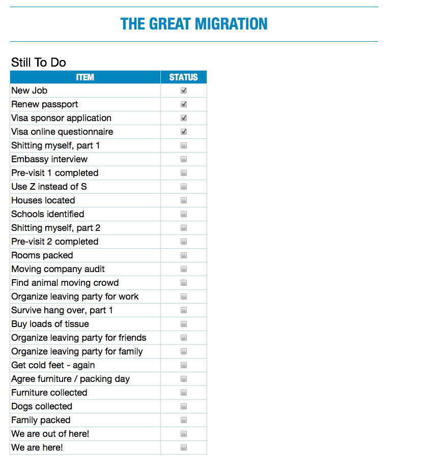 May 6, 2011 Viking Heart Warrior The Great Migration Check List Not too sure I left anything out. Anything missing? Share this: Share on X (Opens in new window) X Share on Facebook (Opens in new window) Facebook Share on LinkedIn (Opens in new window) LinkedIn Share on Reddit (Opens in new window) Reddit Share on Tumblr (Opens in new window) Tumblr Email a link to a friend (Opens in new window) Email Like Loading... Related