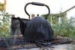 As I arrived back at the house, my fears were realized. Not that the house was on fire, but the kettle was still on. Unfortunately so was the gas and the kettle, which once was read, had started to turn black. The handle was too hot for me to hold with my bare hands, so I grabbed a ovenmit and quickly ran into the garden with the kettle. I threw it into the snow.