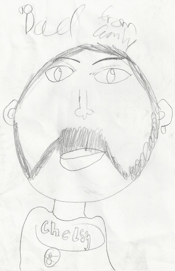 My dear daughter loved my beard, and even drew an excellent picture (see below) which really captured my look – with the exception of the earring. It even shows my Chelsea T-shirt.
