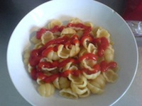 Some negotiations had taken place and they now agreed to the royal dish ‘pasta a la ketchup‘ sprinkled with some industrial cheddar cheese.