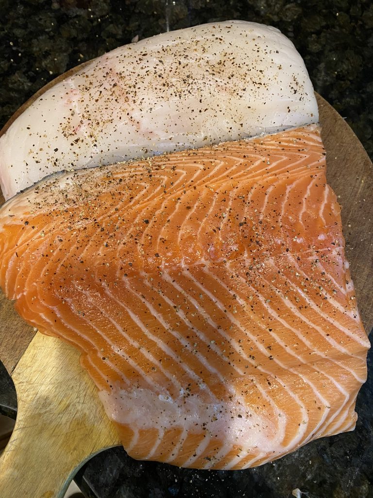 The piece of halibut I bought was roughly 2lbs, so I also bought a similar-sized fresh Alaskan salmon. We love to fish and the kids always ask for more.