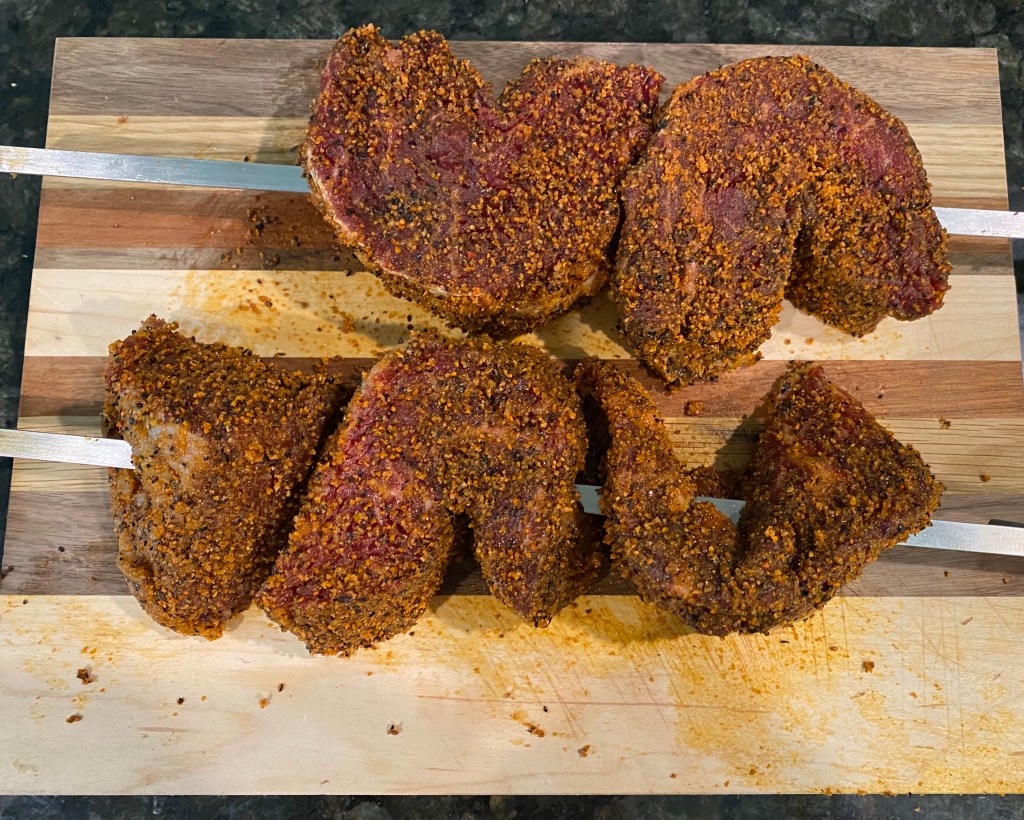 I had a smaller Picanha roast, and managed to get five nice cutlets, and skewered them.