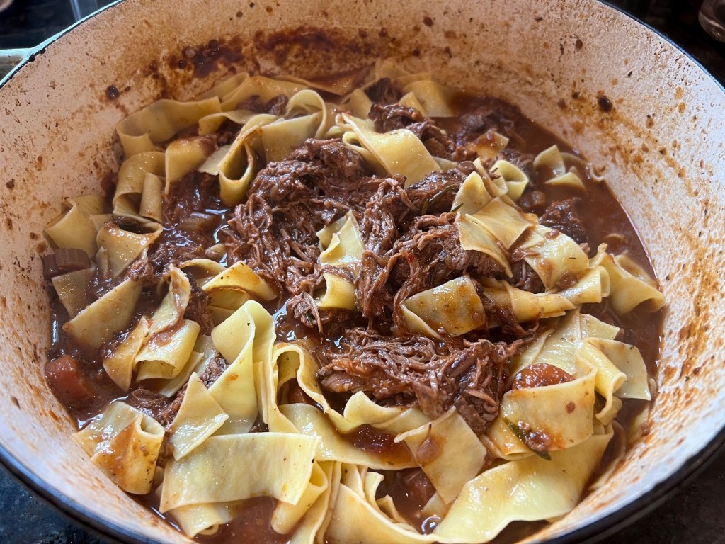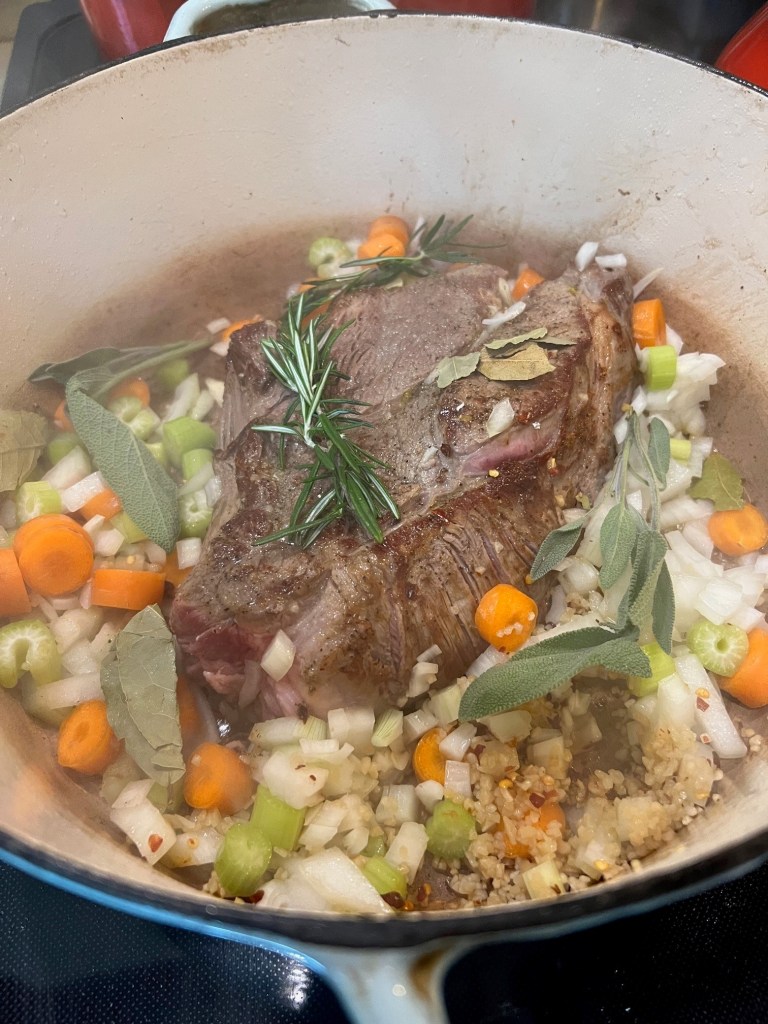I fired up the Traeger, prepped the 2lbs of chuck roast, and started the slow roasting process. Opening a bottle of red wine at 9.30 am was a little odd. I swear I did not drink anything!