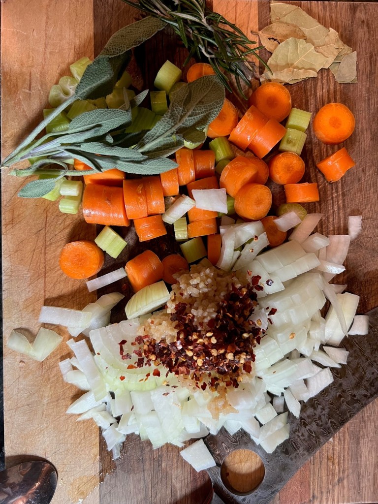 While the roast was roasting, I prepped the chicken, vegetables, bread, puff pastry, and all the ingredients for the baking.
