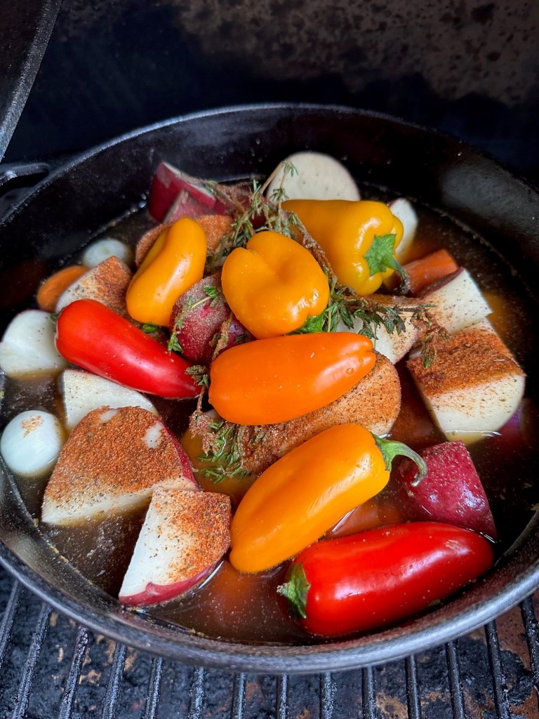 In true Viking Heart Within spirit, I prepared an hour-long pot roast on the Trager, using a nice 3.7lb chuck roast from the quarter cow I bought in late summer. A beautiful piece of meat with plenty of healthy fat, making it very tender.