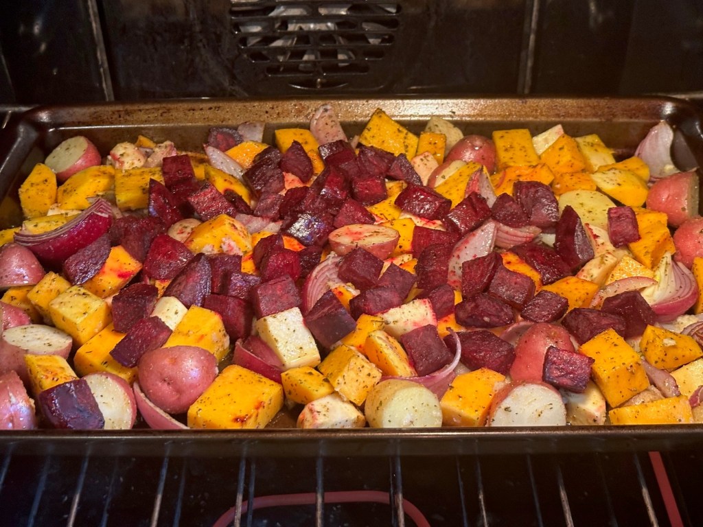 I then moved on to a beautiful mix of root vegetables that I roasted with olive oil, which I’ll serve with quinoa and grilled chicken thighs – on the Traeger, of course.