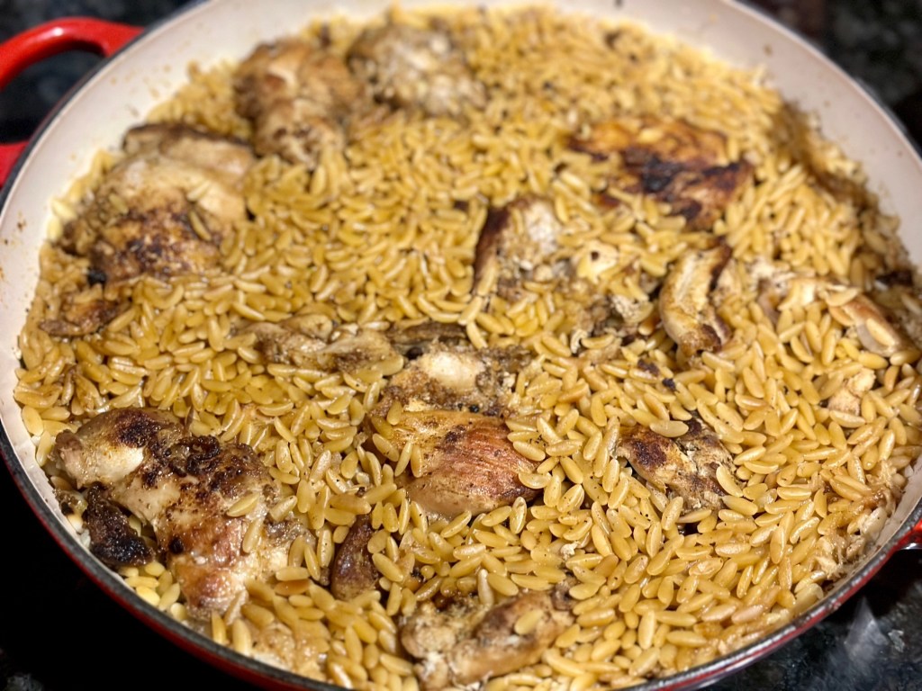 It of course helps when we can mix the chicken with green peppers, onions, cauliflower rice, orzo, and plenty of garlic. Hearty meals for a hungry family. Perfect recipes for a busy week.