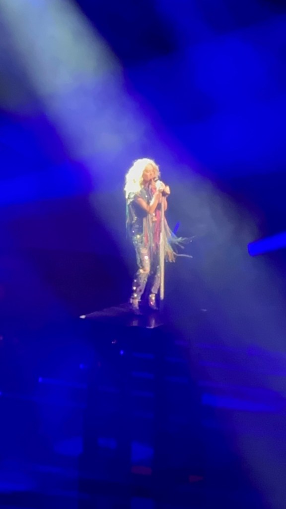 Carrie Underwood is an excellent performer and entertainer. She has a beautiful and powerful voice and many catchy songs. She changed her wardrobe 7-8 times during the show, played the guitar, was hoisted across the audience (twice), and played a fantastic drum solo. The show lasted for almost two hours non-stop.
