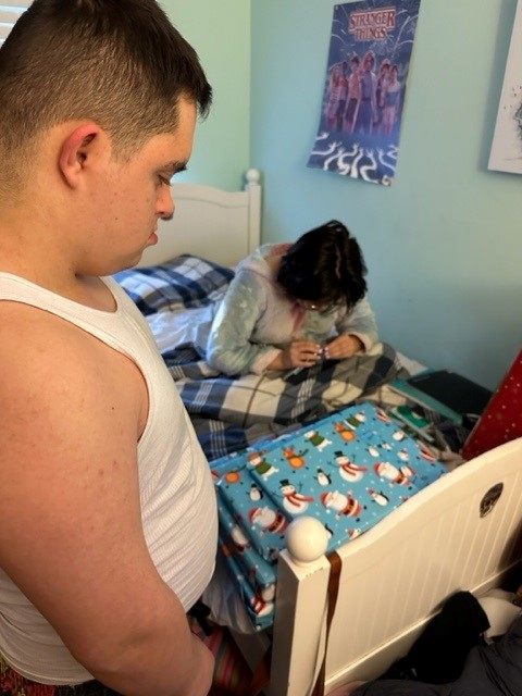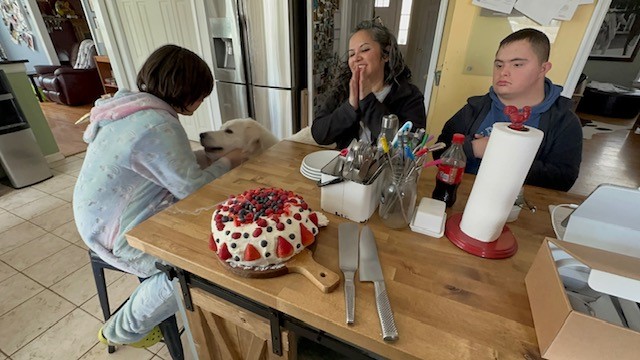 We celebrated our latest teenager with some less than convincing wake-up singing, a family tradition, and presents in bed. Our son was eyeballing the presents and calmly removed a few presents so he could help her unpack.