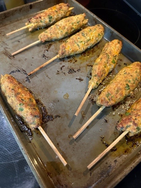 While making grilled chicken Kofta skewers, I also made a few spiced-up meatballs for the kids’ lunch. Might as well do something nicer for the kids with pasta. I’ll serve the chicken Kofta with a nice simple salad and some boiled rice. Easy and fast dinner.