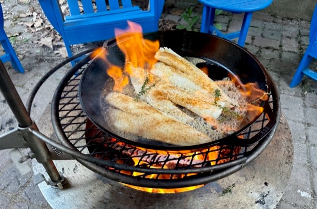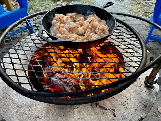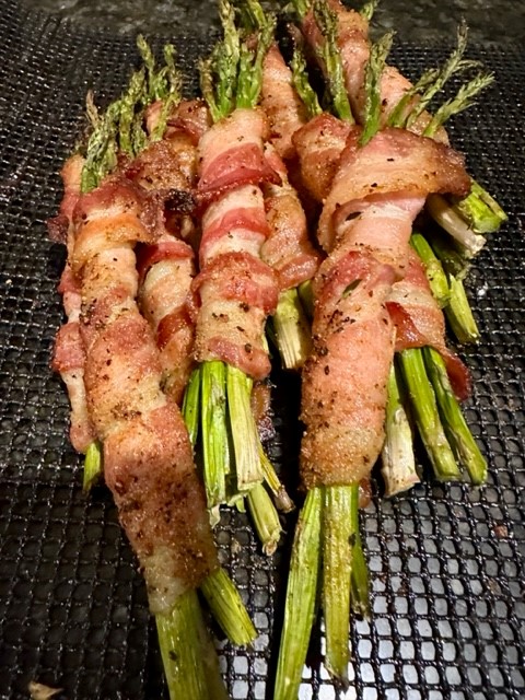 My loves seafood, so I cooked her meal over an open fire, using my Breeo firepit, and roasted the asparagus in the Traeger. Perfect combination. A light but delicious dinner.