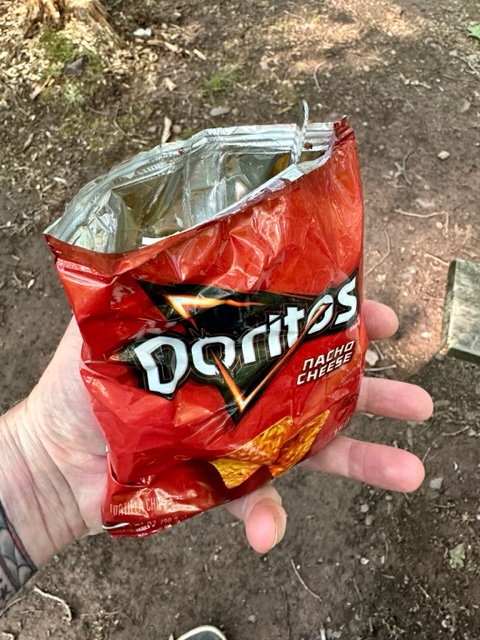 I made some easy camp food consisting of white wurst, burgers, and Doritos in a bag. The latter is a fun camping meal where you fry some ground meat, open a bag of Doritos, mix the meat and some lettuce, cheese, and sour cream, and eat out of the bag. Very popular dinner option, and the kids ate two bags each!