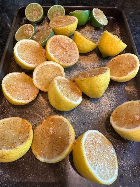For the 4th of July adult beverage, I made some great smoked bourbon lemonade. You smoke the lemons drizzled with honey and sweet BBQ rub for two hours at 225F, let it cool off, then add sugar and water.