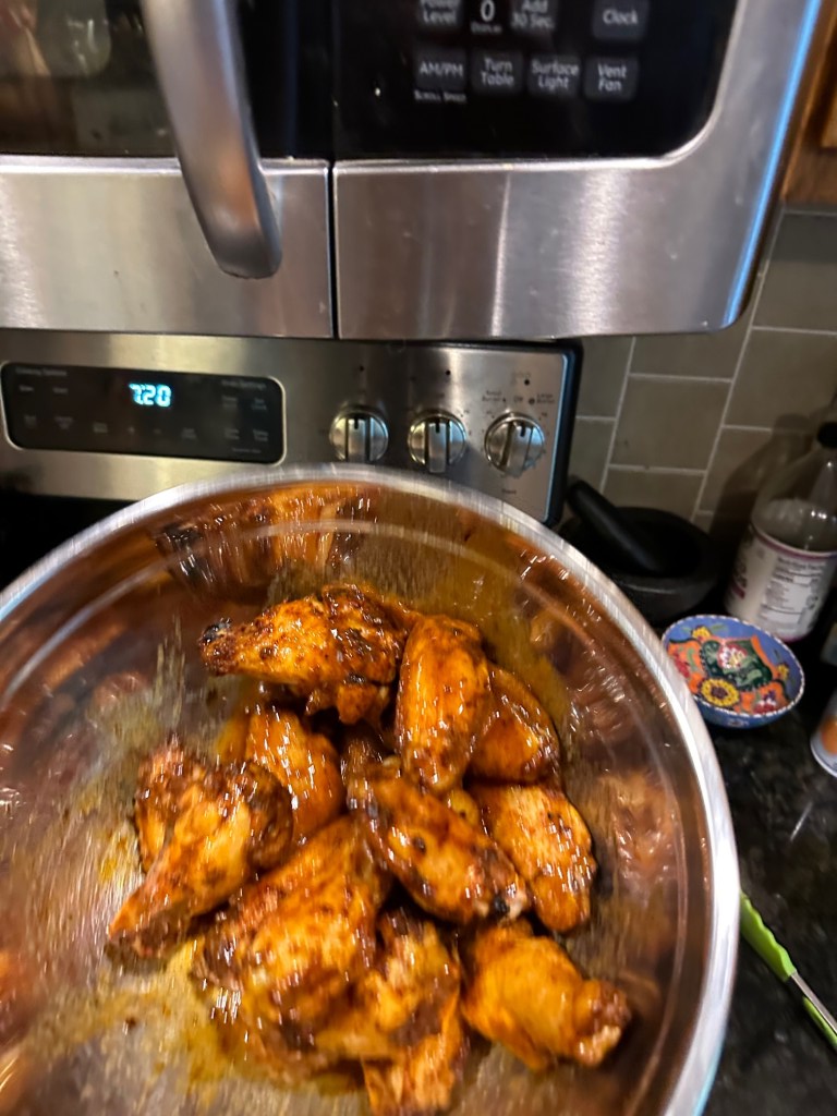 I also made a few advanced chicken burgers from ground chicken and avocados, with some extra herbs and hot sauce. I grill them on the Traeger, with the thighs, and will serve them inside a thin bagel.