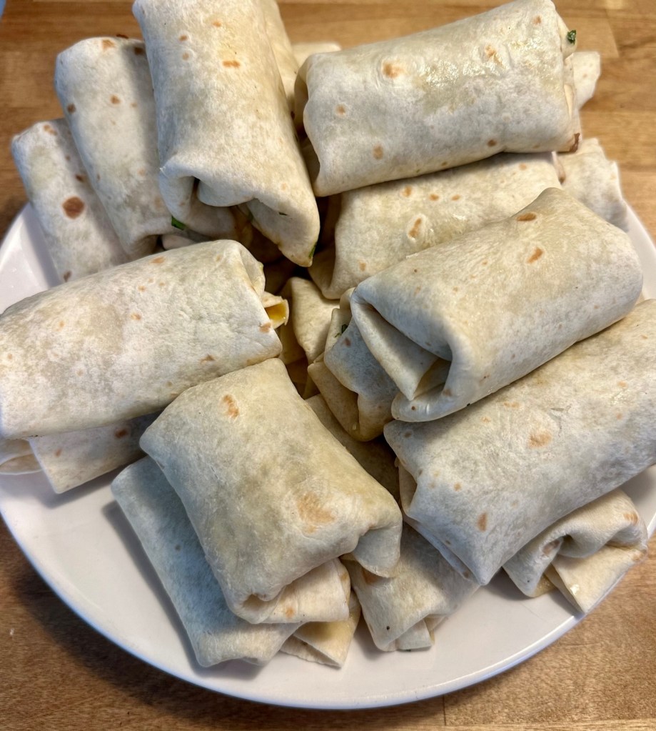 For the rolls to stay rolled and closed, I heated them slightly on a pan.