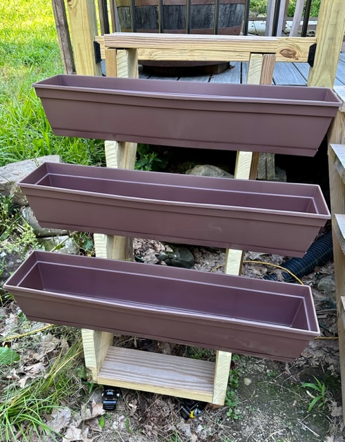 I’m working on a hanging light fixture made from a walnut slab and putting the finishing touches on the new herb garden for my Thai herbs.