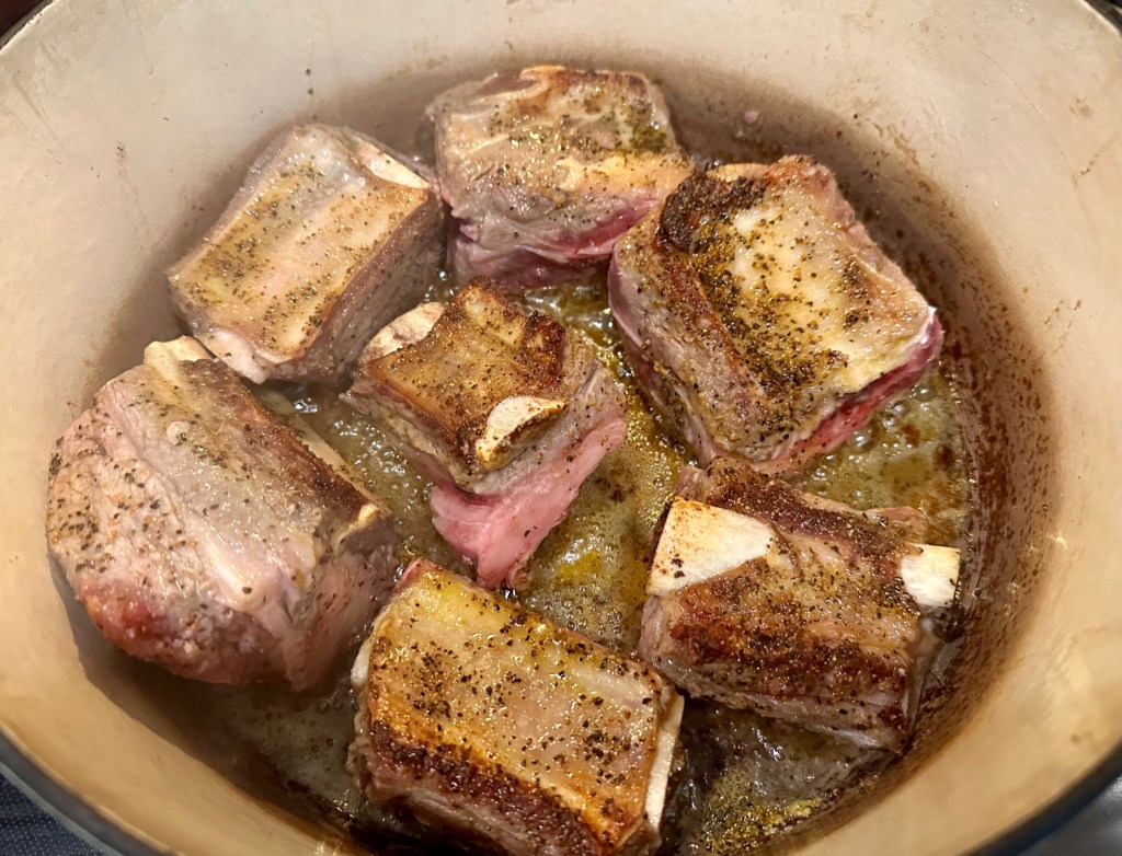 Both dishes involved gently browning the meat and then preparing the trilogy of any stew: celery, onion, and carrot.