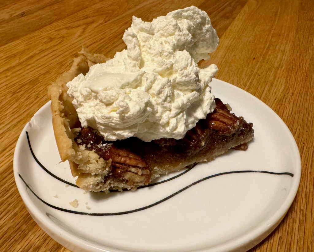 And true to tradition, we overate and indulge in various sides and desserts. Our turkey was only 15 lbs, and I made my famous Pecan Bourbon Pie.