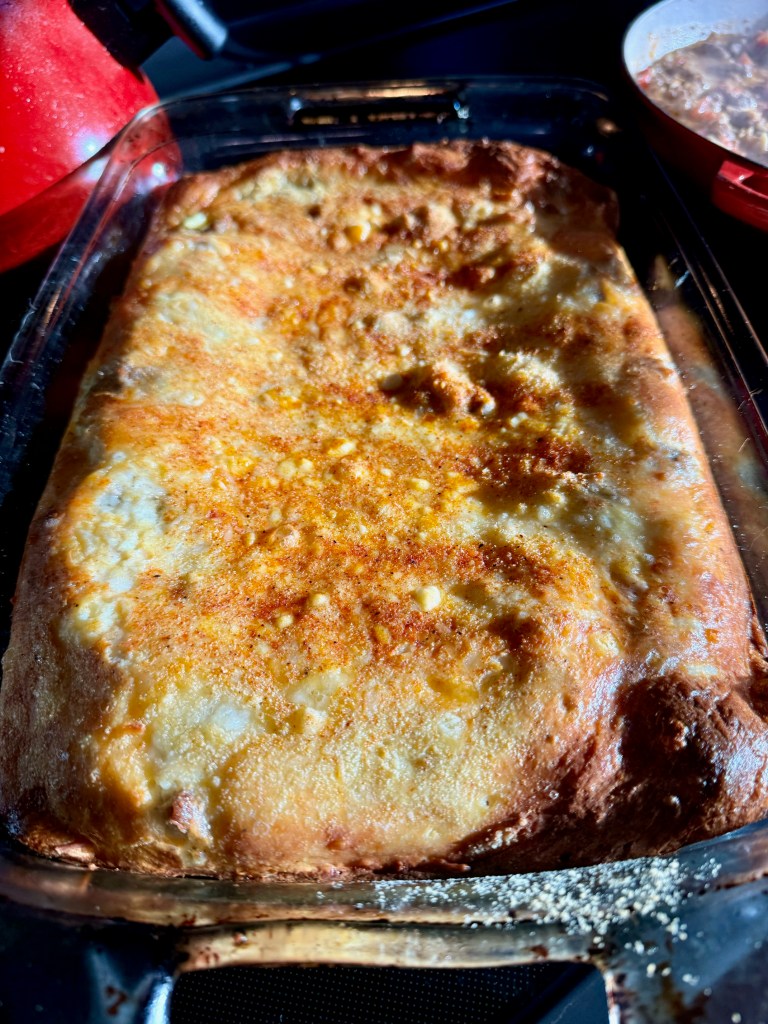 I’ll melt the chicken burrito tonight using the chicken souvlaki pieces, red onion, and grated cheese. I’seal” the burrito on the pan.