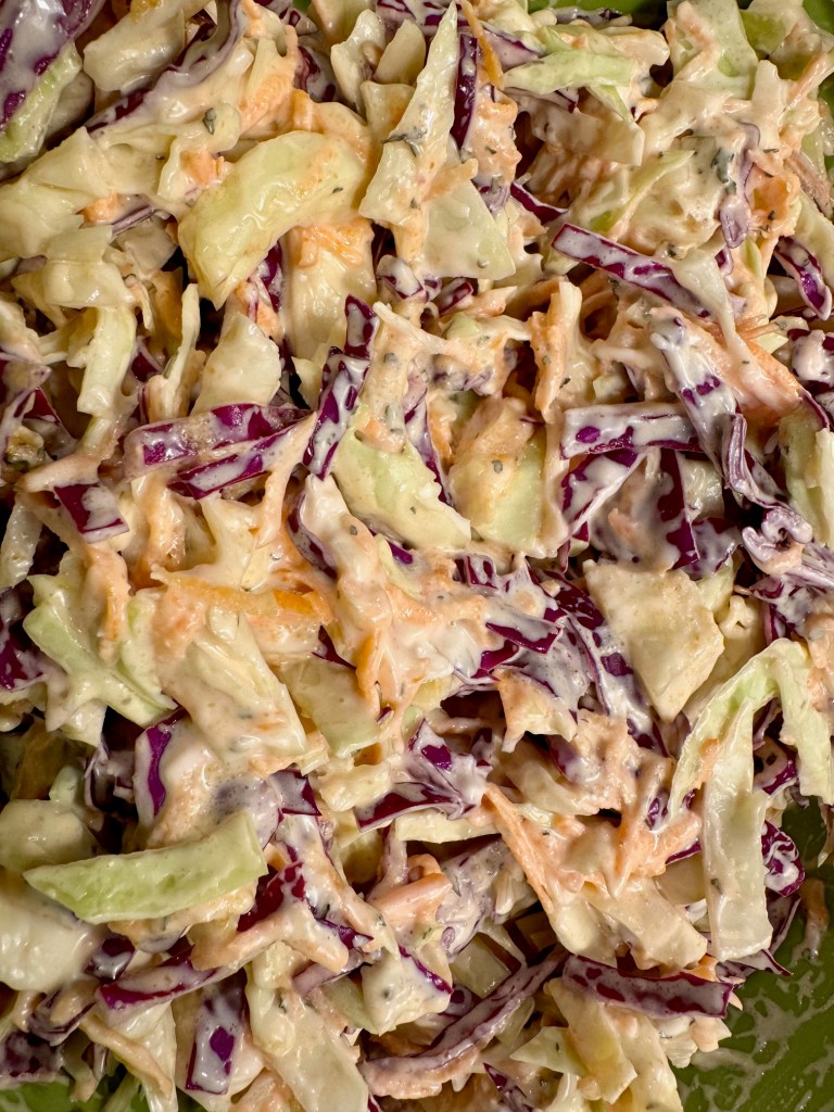 I loaded the bread with sliced BBQ chicken, salami, and homemade coleslaw.