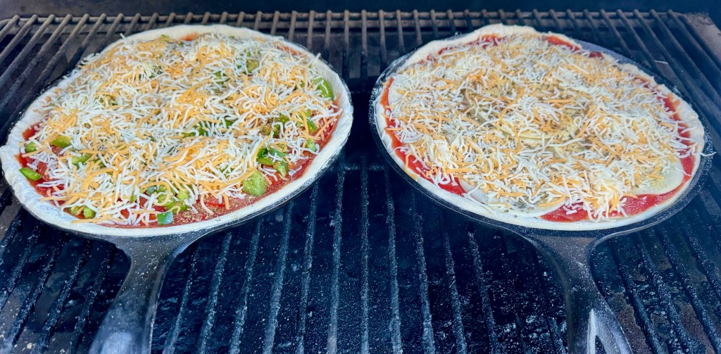 Lastly, I’ll grill some vegetables and shrimp on the Traeger, boil some pasta, and serve it with grated parmesan cheese on Friday.