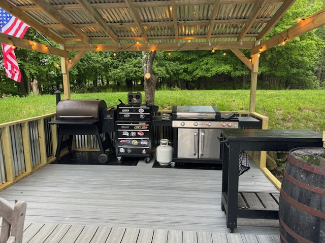I’ve long been fascinated by the prospect of having an outdoor kitchen. Having my grills, Traeger and Blackstone, easily accessible on the deck while still covered to protect them from the elements would allow me to prepare and cook meals all year round.