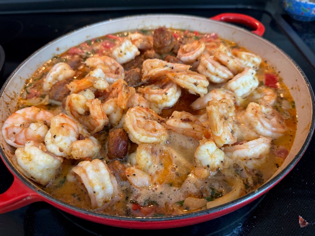 I mainly focused on two dishes: Cajun shrimp and sausage and chicken and rice skillet.