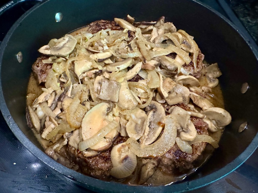 I beefed up the dish by making a creamed mushroom gravy and will top it off with Danish lettuce, aka bacon.