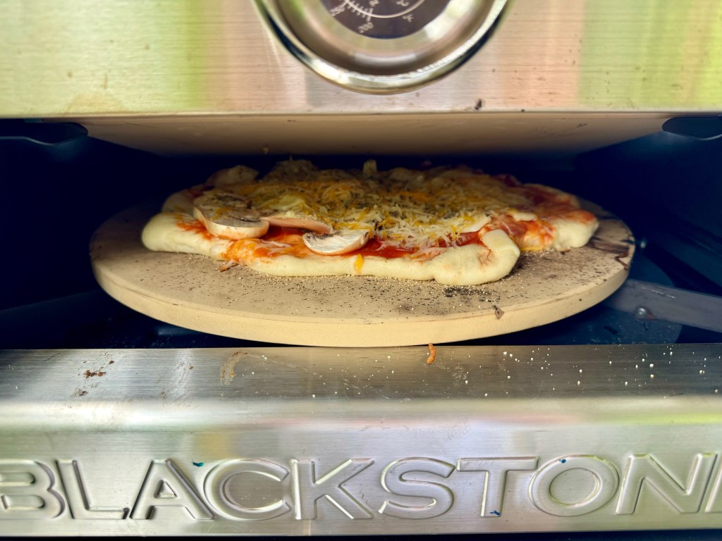 I got my hands on the Blackstone pizza oven last year for Father’s Day, and we’ve used it a couple of times. It works well, although it only takes small propane bottles and can only fit one pizza at a time. However, we do not make pizza that often and cannot justify a larger pizza oven.