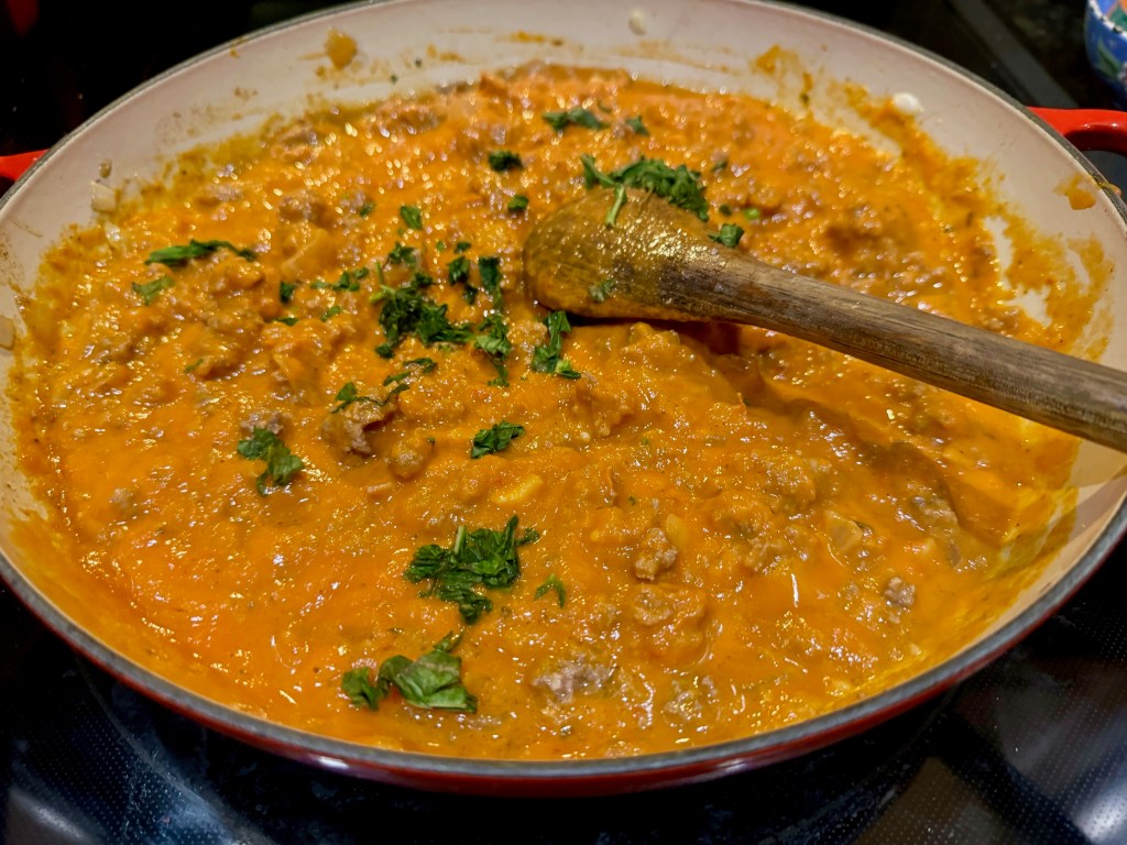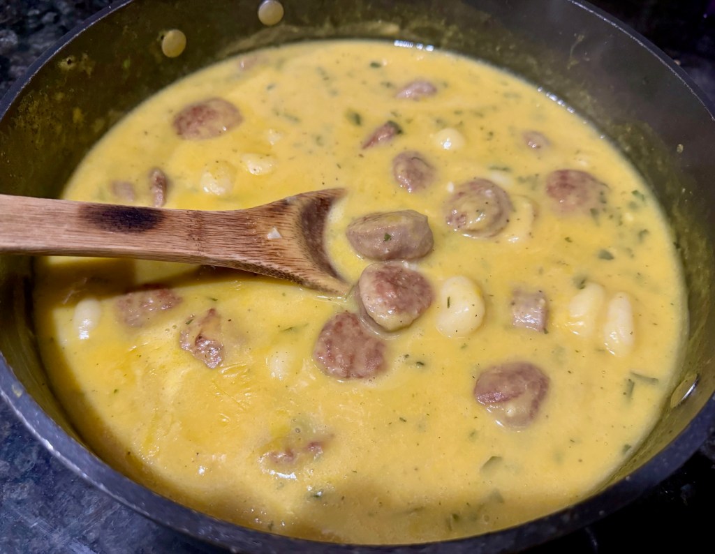The butternut squash puree gave the gnocchi and Italian sausage dish a creamy, yellowish color.