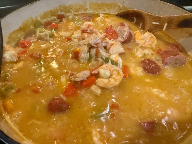 Staying with exciting dishes, I made a large pot of Creole Gumbo with shrimp, sausage, and chicken. It’s an excellent meal that fills you up, and we have enough for the freezer for the coming week.