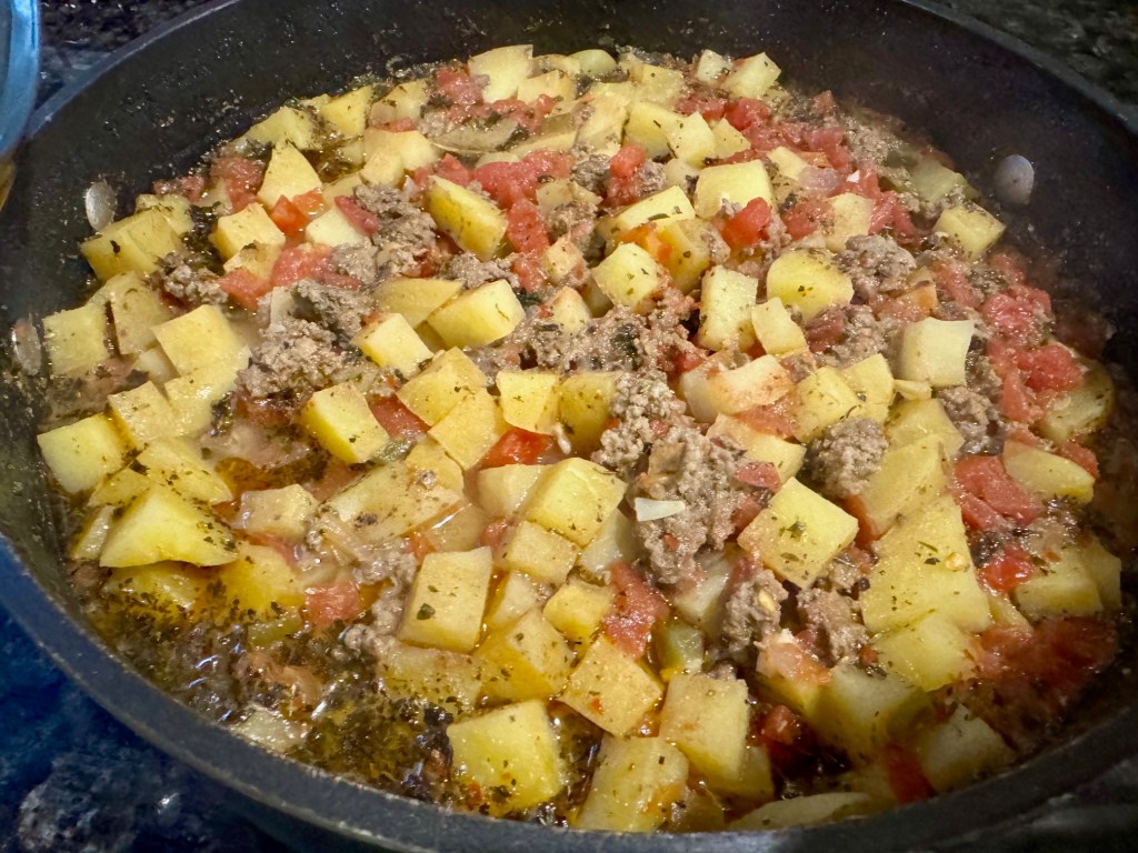 | Monday | Pasta salad with peppers, corn, and feta cheese | Italian ground-beef and potatoes |