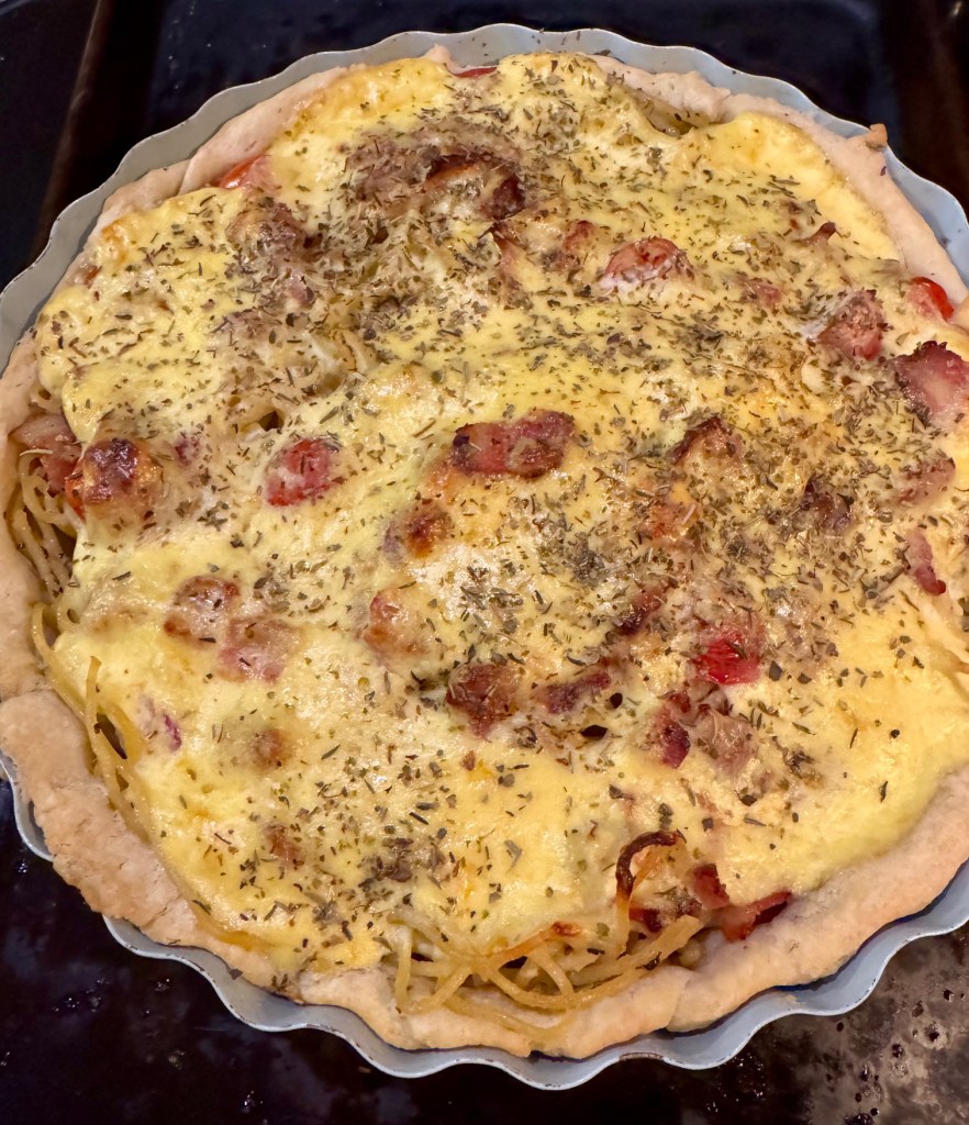 Other lunches include pasta meat sauce and a few slices of quiche.