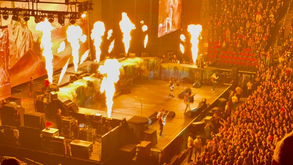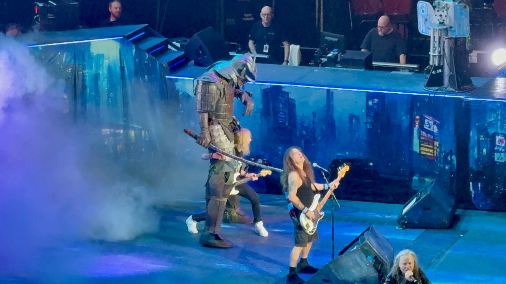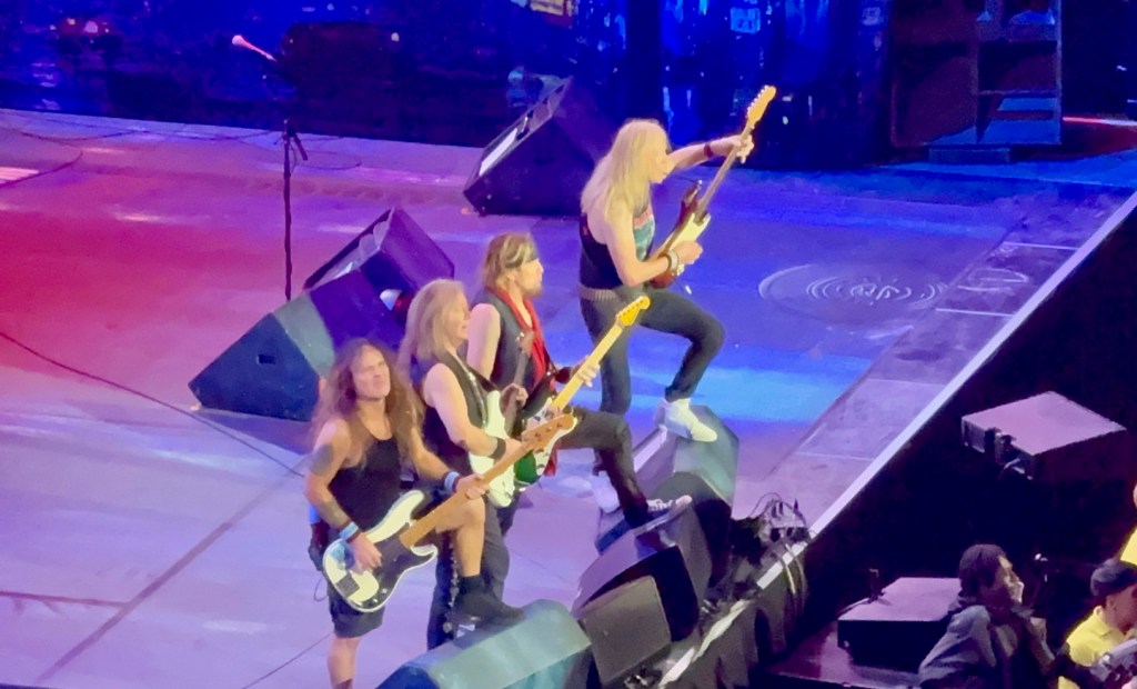 This is the fourth concert I’ve seen with Iron Maiden, and the stage effects and props were more subdued. They didn’t bring the small fighter plane hanging over the stage, and Ed (the monster) did not appear as the Trooper.