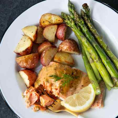 Garlic Salmon and Roasted Spuds